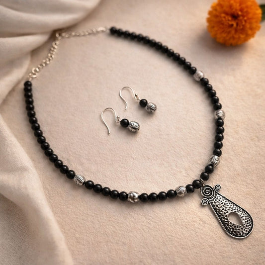 Rs. 799Sale price Rs. 580Midnight Empress: Black Beaded Necklace and Earring