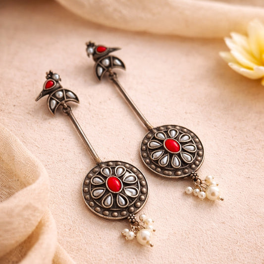 Rs. 699Sale price Rs. 499Floral Nimbus: Coral Bead Silver Toned Stud Earring