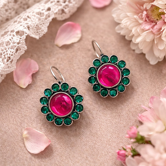 Rs. 550Sale price Rs. 399Candy Bloom: Majenta and Green Stone Earring