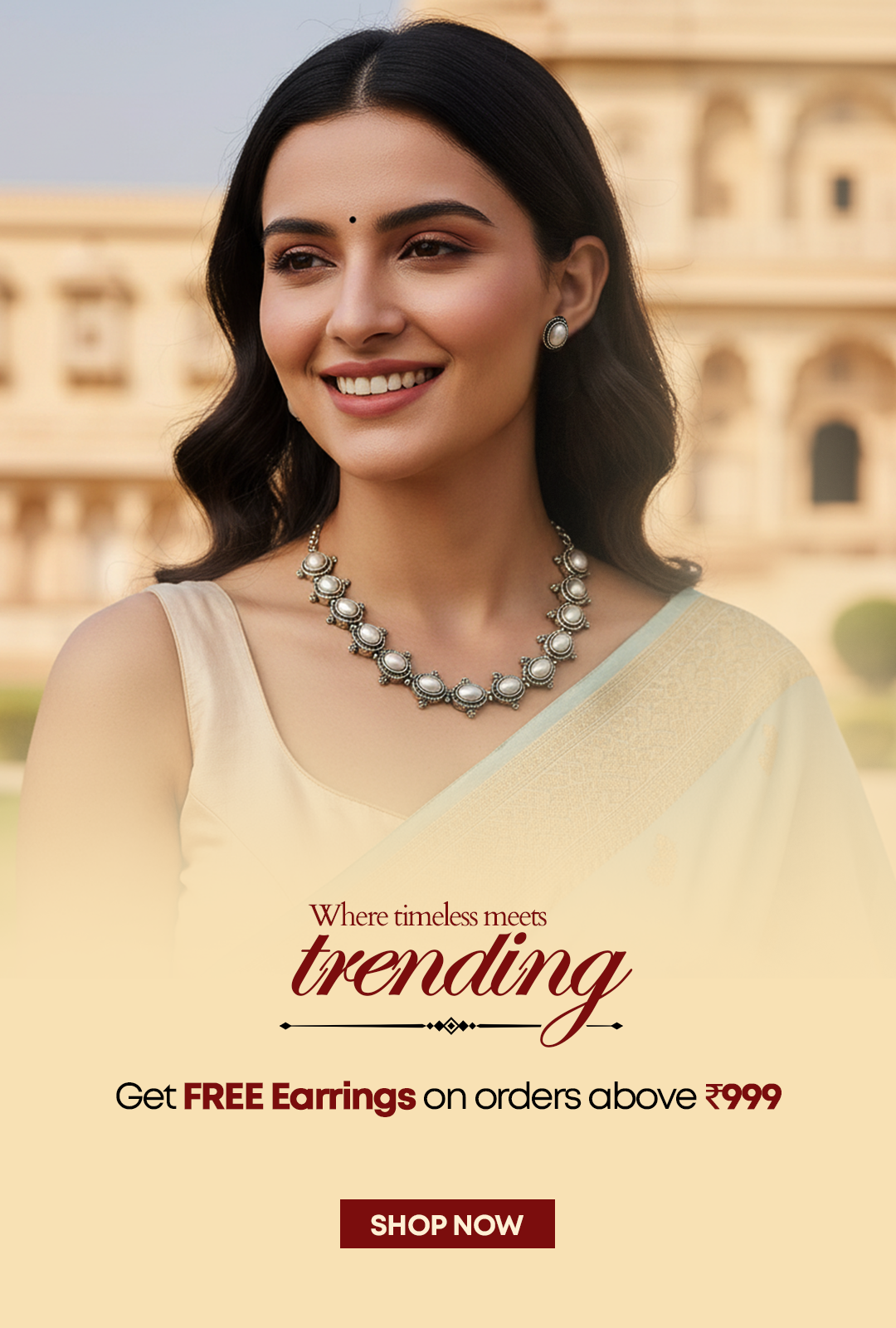 Rs. 1,199Sale price Rs. 899Champagne Glow: Handcrafted Pearl Necklace and Earring Set