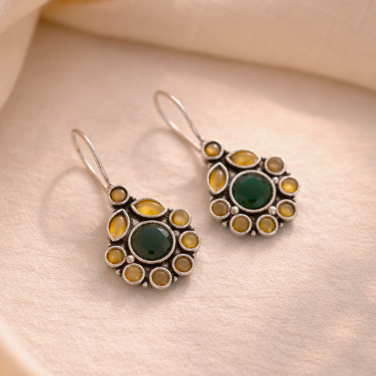 Rs. 550Sale price Rs. 399Golden Bloom: Green Stone Silver toned Earring