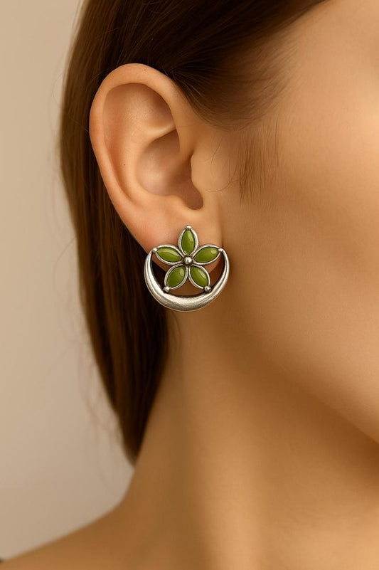 Rs. 599Sale price Rs. 250Moonflower Studs: Silver Toned Green Stone Stud Earring
