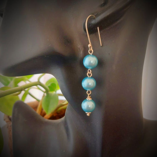 Rs. 450Sale price Rs. 225Mist Blue: Handmade Triple Pearl Drop Earrings