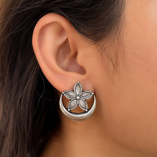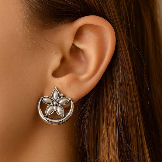 Rs. 599Sale price Rs. 499Moonflower Studs: Silver Toned Pearl Stud Earring