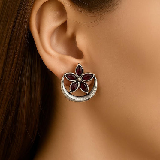 Rs. 499Sale price Rs. 250Moonflower Studs: Silver Toned Maroon Stone Stud Earring