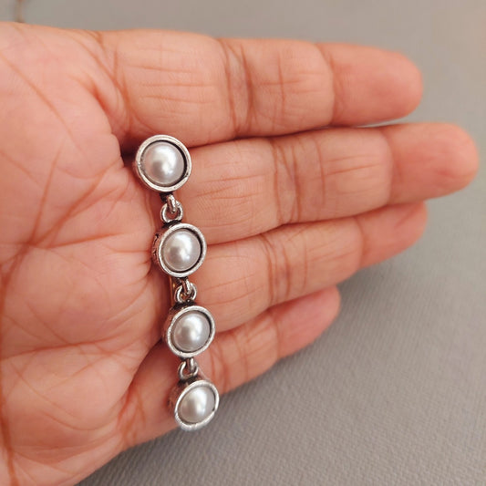 Rs. 499Sale price Rs. 425Pearl Charisma: Oxidized Four-Pearl Dangler Earrings