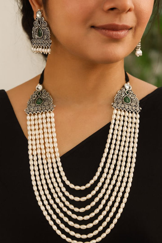 Rs. 1,899Sale price Rs. 1,599Shubhra: Layered Pearl Necklace Set: Green (Limited Edition)