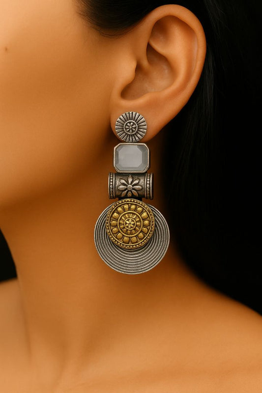 Rs. 1,099Sale price Rs. 899Statement Disc Dangler: Two-Tone Light Grey Stone Stud Danglers