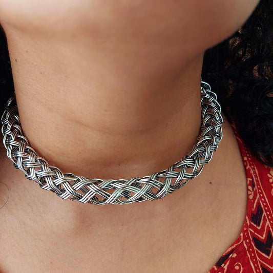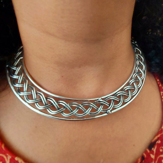 Rs. 750Sale price Rs. 639Silver Toned Braided Flat Hasli Necklace