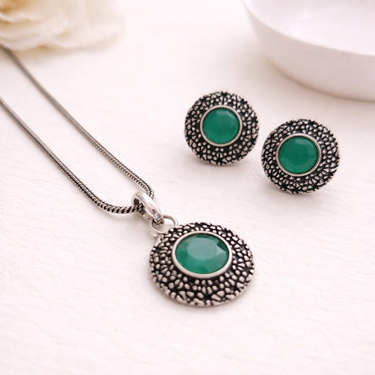 Rs. 899Sale price Rs. 650Vogue Essentials Collection: Emerald Green Pendant and Earring Set