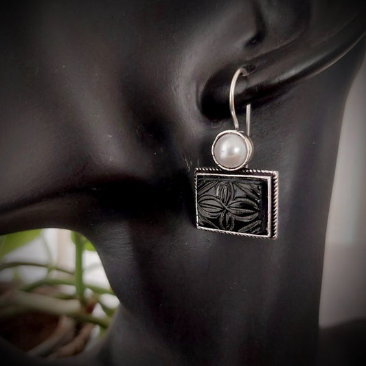 Rs. 650Sale price Rs. 399Stylish Black Carved Stone and Pearl Hoop earring
