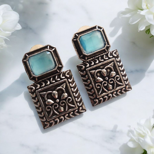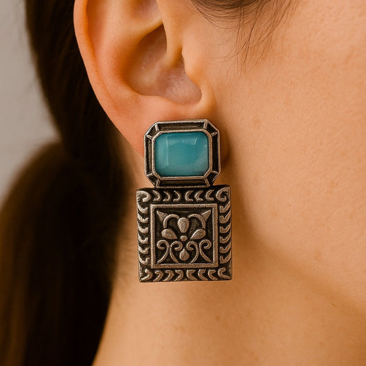 Rs. 850Sale price Rs. 299Glimmer & Grace: Blue Stone Silver Toned Earring