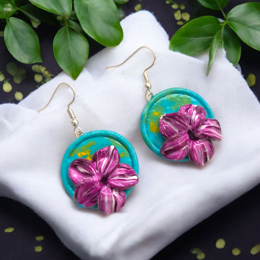 Rs. 450Sale price Rs. 350The Tropical Bloom: Clay Earrings with Purple Flowers