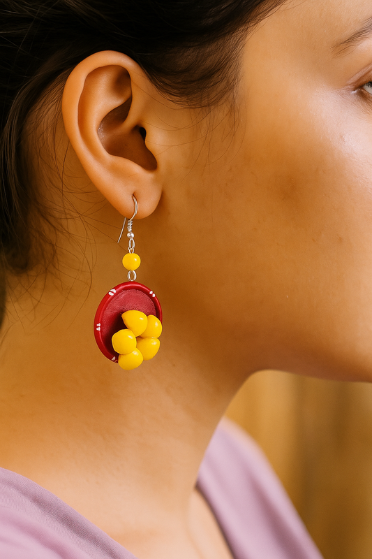 Rs. 450Sale price Rs. 350The Fiery Bloom: Clay Earrings with Yellow Flower.