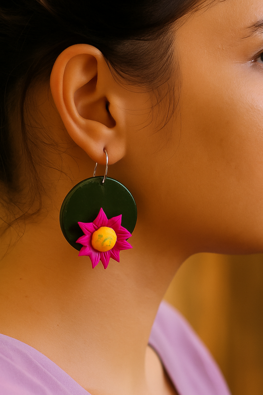 Rs. 450Sale price Rs. 350The Forest Bloom: Clay Earrings with Deep Pink Flowers