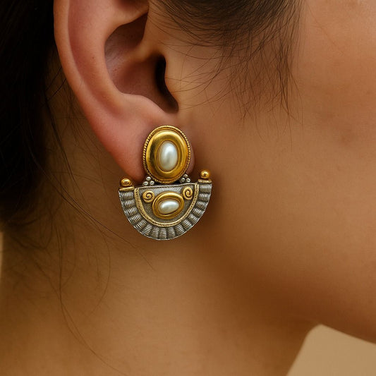 Rs. 850Sale price Rs. 649Dual-Tone Muse: Stylish Pearl Studs