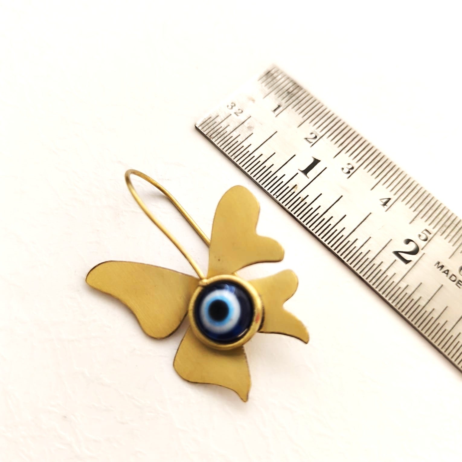 Astra Wings: Brass Evil Eye Butterfly Earring