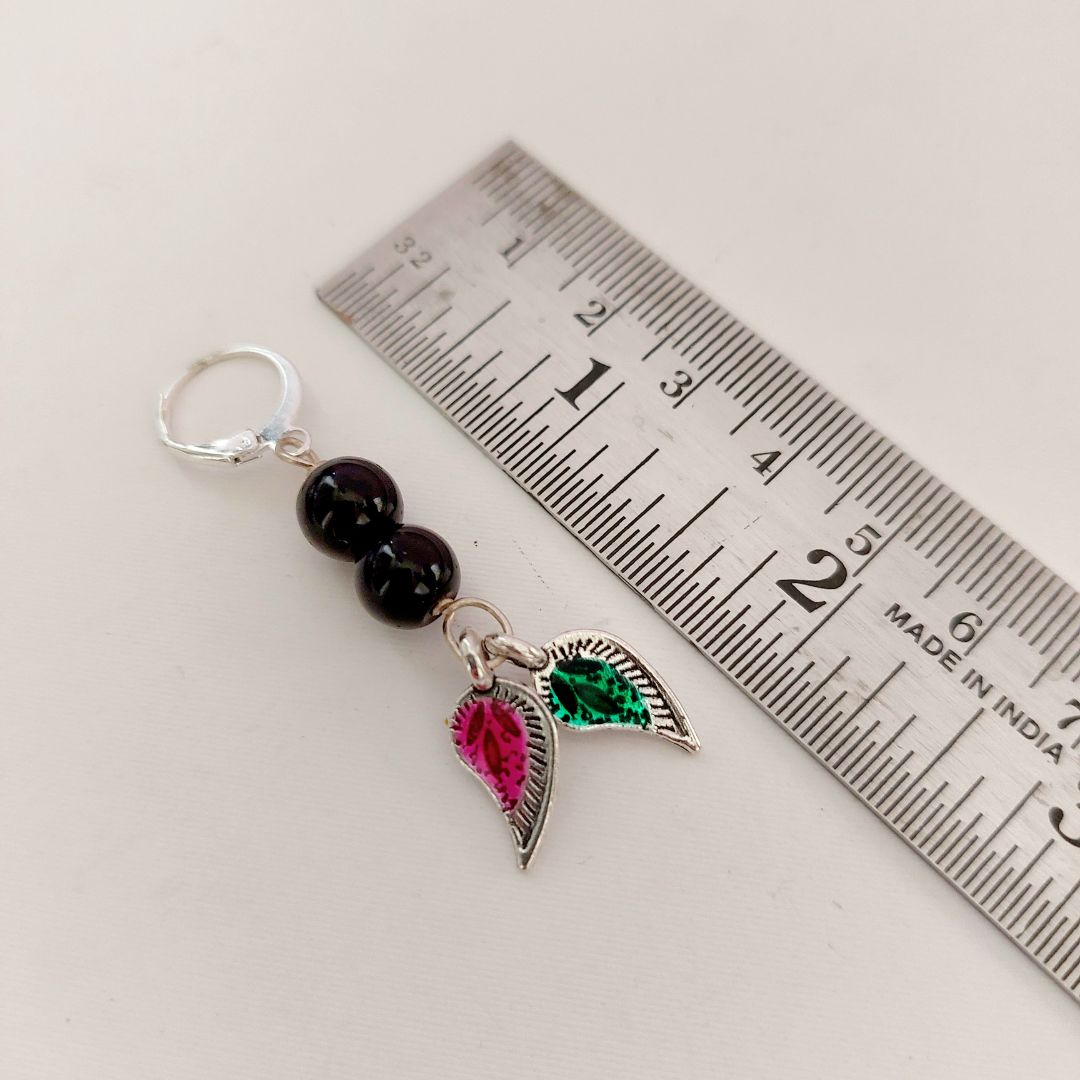Design & Pattern: Intricately designed with glossy black beads paired with alternating pink and green enamel leaf motifs, giving it a playful yet graceful appeal..