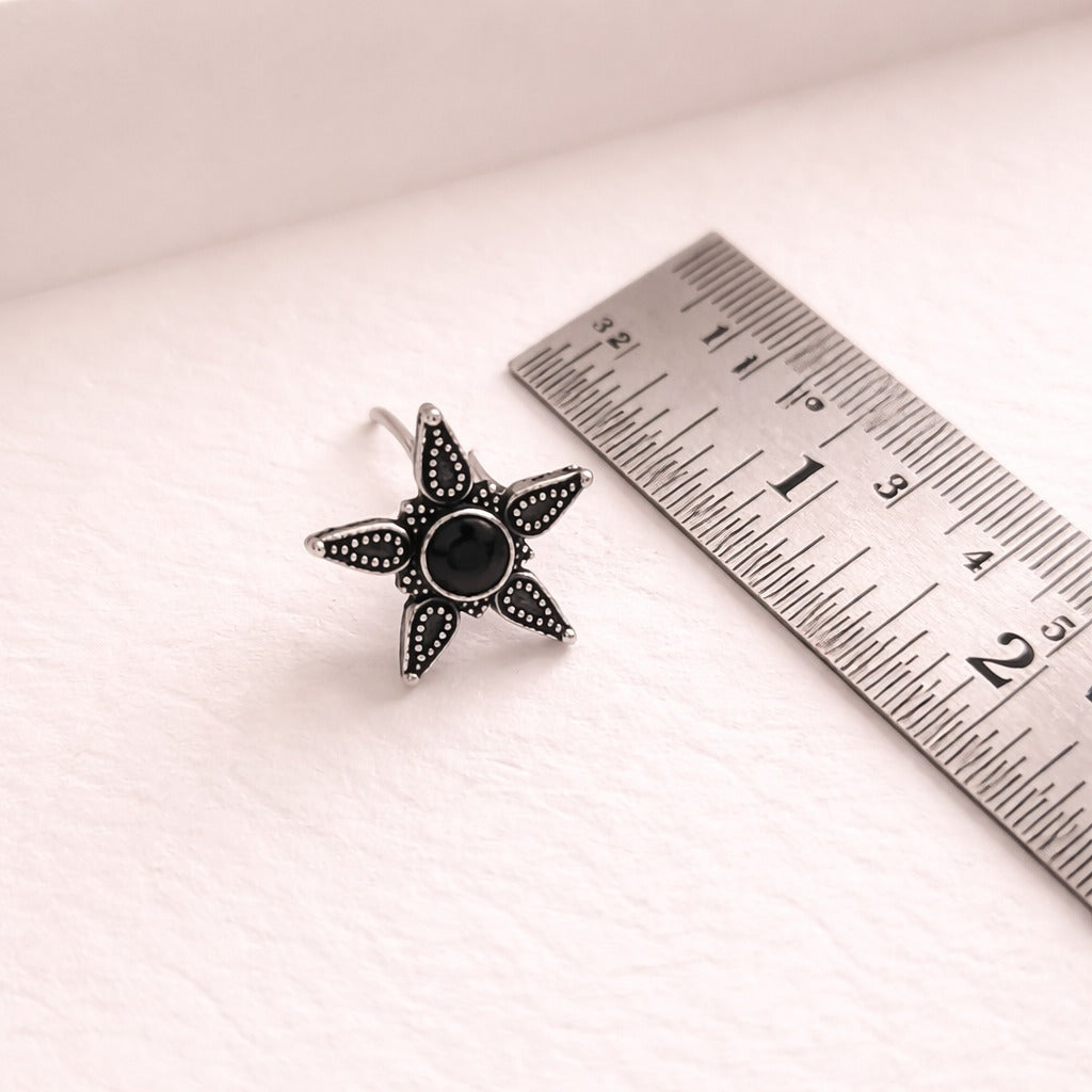 - Design: Floral starburst motif with intricate oxidised detailing