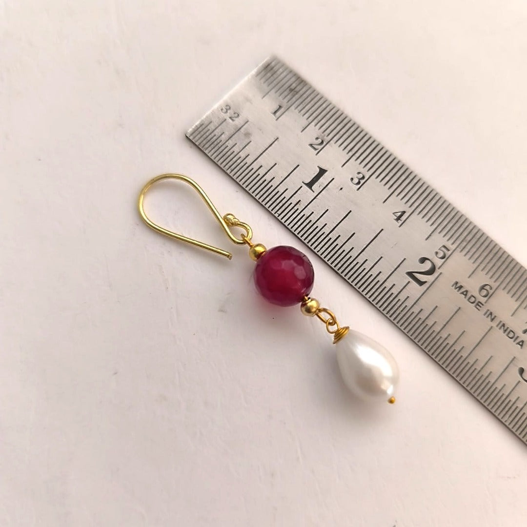 - Coordinated pearl & ruby drop earrings