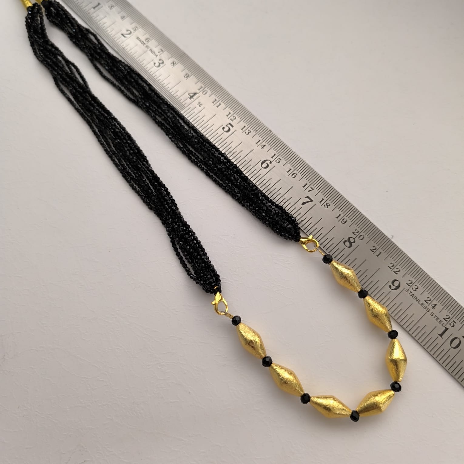 • Multi-strand black micro-crystal beads construction for rich texture