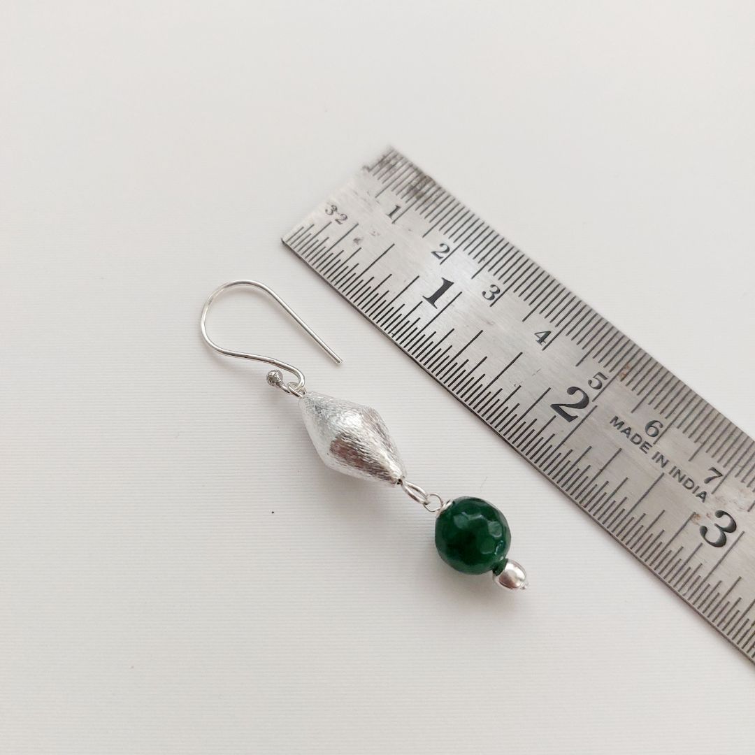 - Earring Type: Matching drop earrings, showcasing a single lush green agate bead complemented by a silver dholki accent for a refined, coordinated look.