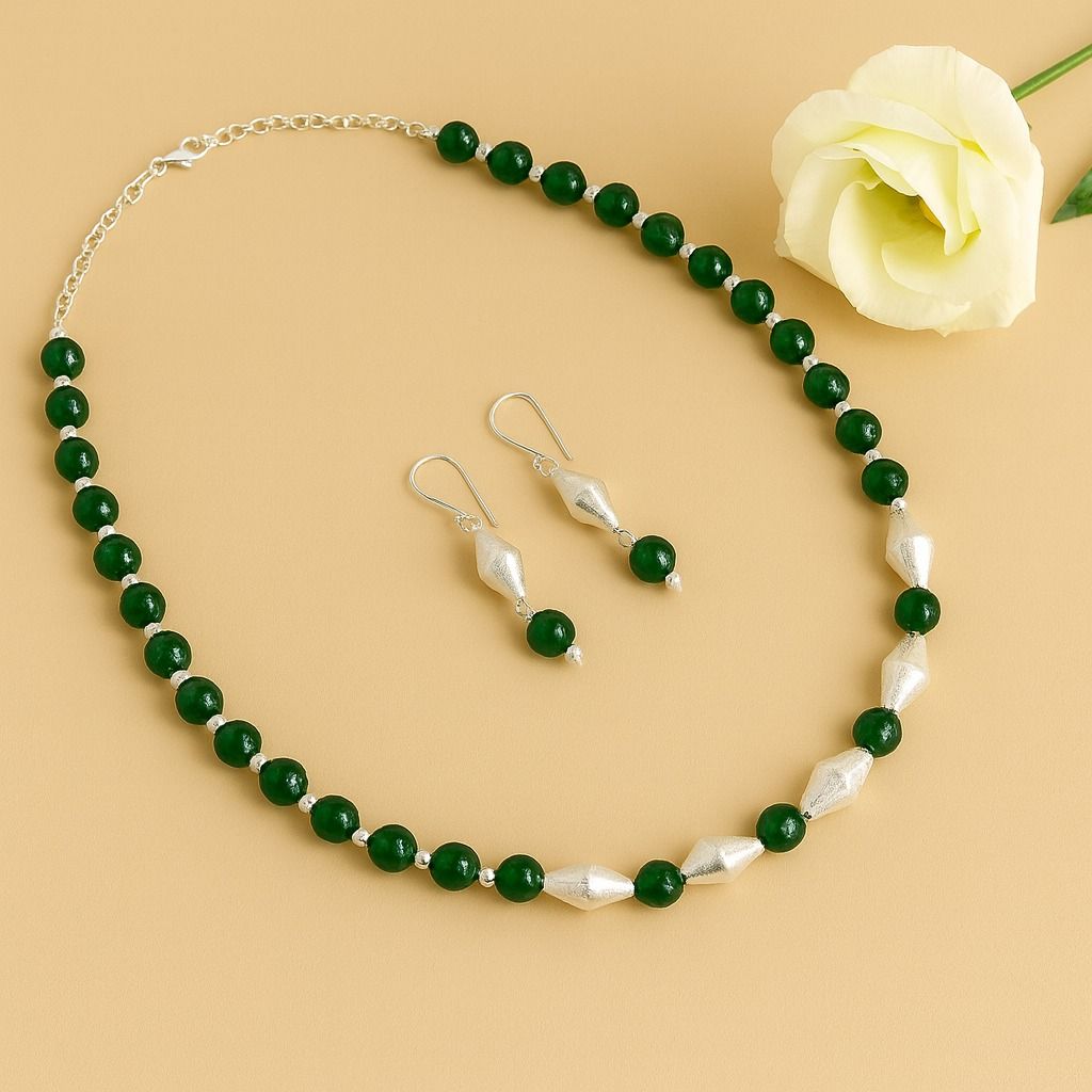 - Material Highlight: Premium-quality green agate for its lustrous natural beauty, paired with silver-tone dholki beads for an artisanal finish.