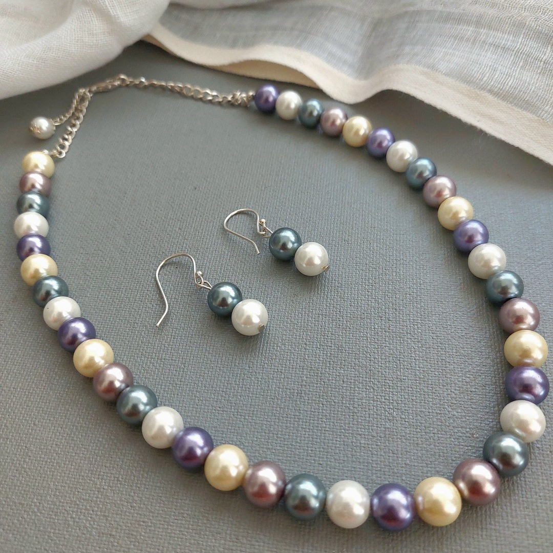 Pearl Spectrum: 5-Shade Pearl Necklace & Earring Set