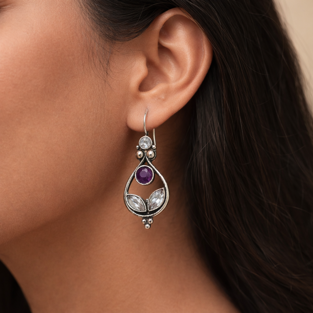 These Purple and White Stoned Pear Shaped Hooks are the ultimate accessory for any fashion-forward woman. Whether you're heading to a fancy event or simply want to elevate your everyday style, these earrings are the perfect choice.