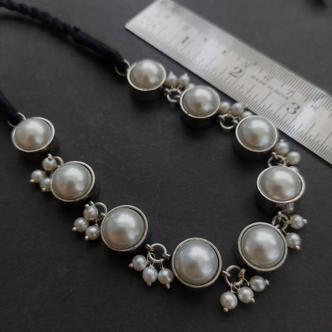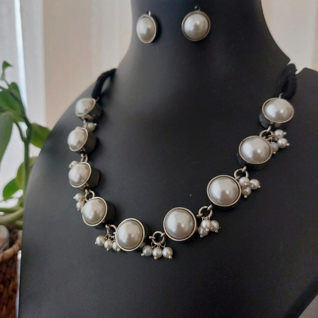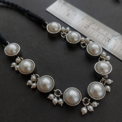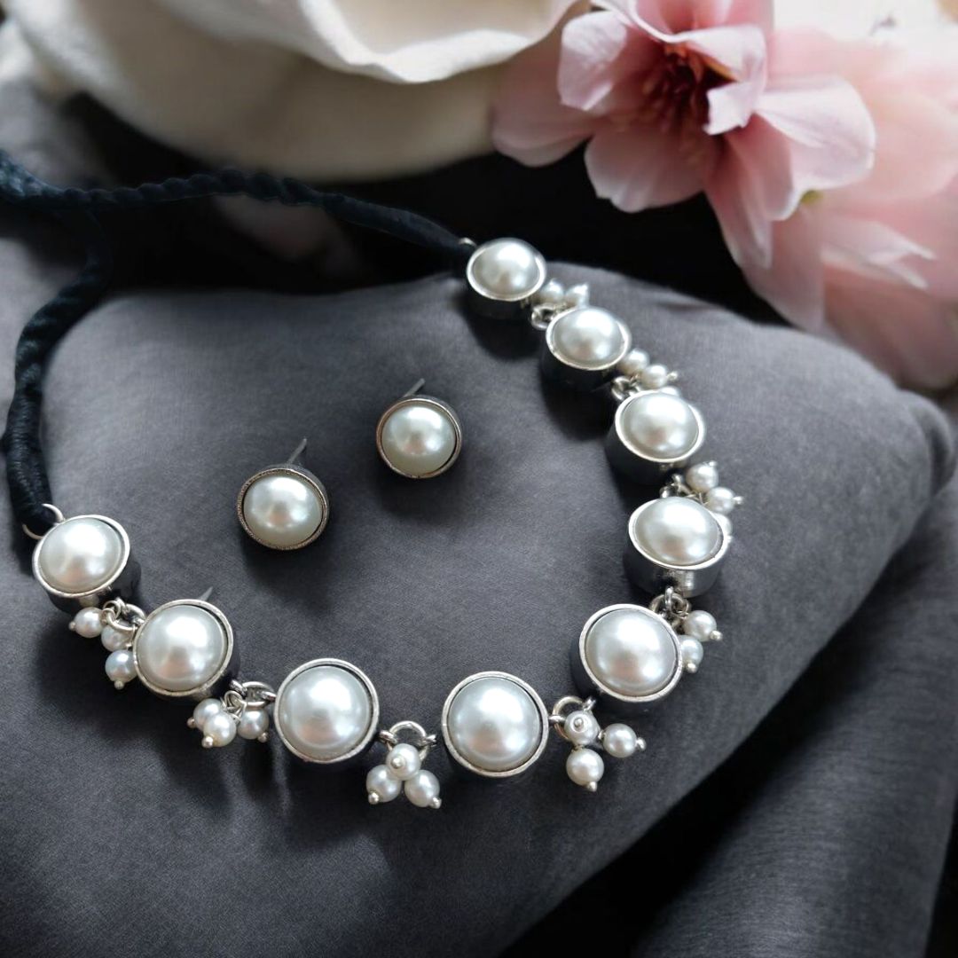 Indulge in the luminous beauty of the Rounded Pearl Necklace Set. This exquisite pairing features a captivating necklace adorned with lustrous, oversized pearls encased in a delicate silver-toned setting.
