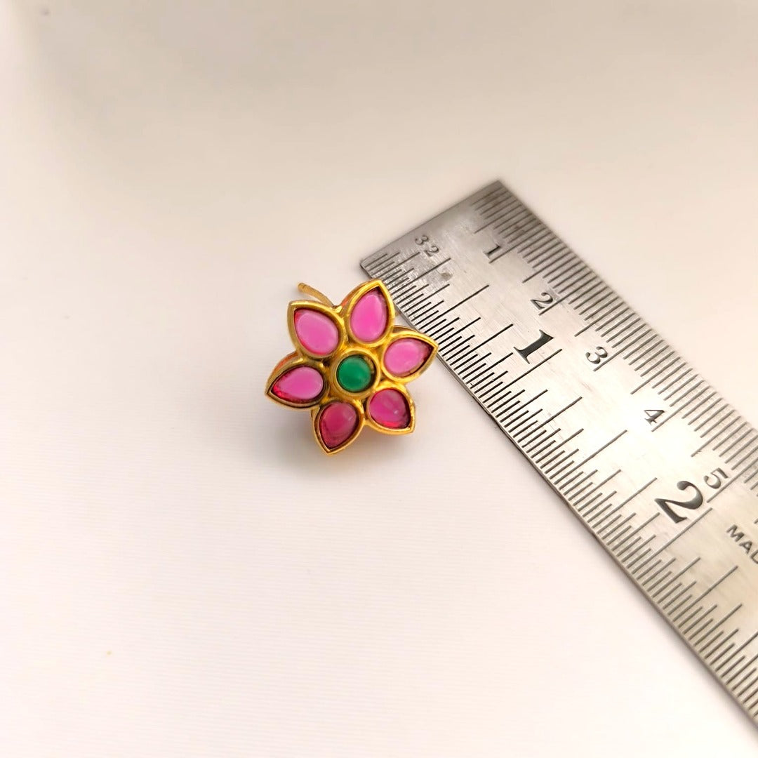 Color of Stones: Ruby-pink and emerald-green stones set in an antique gold frame for a regal look.