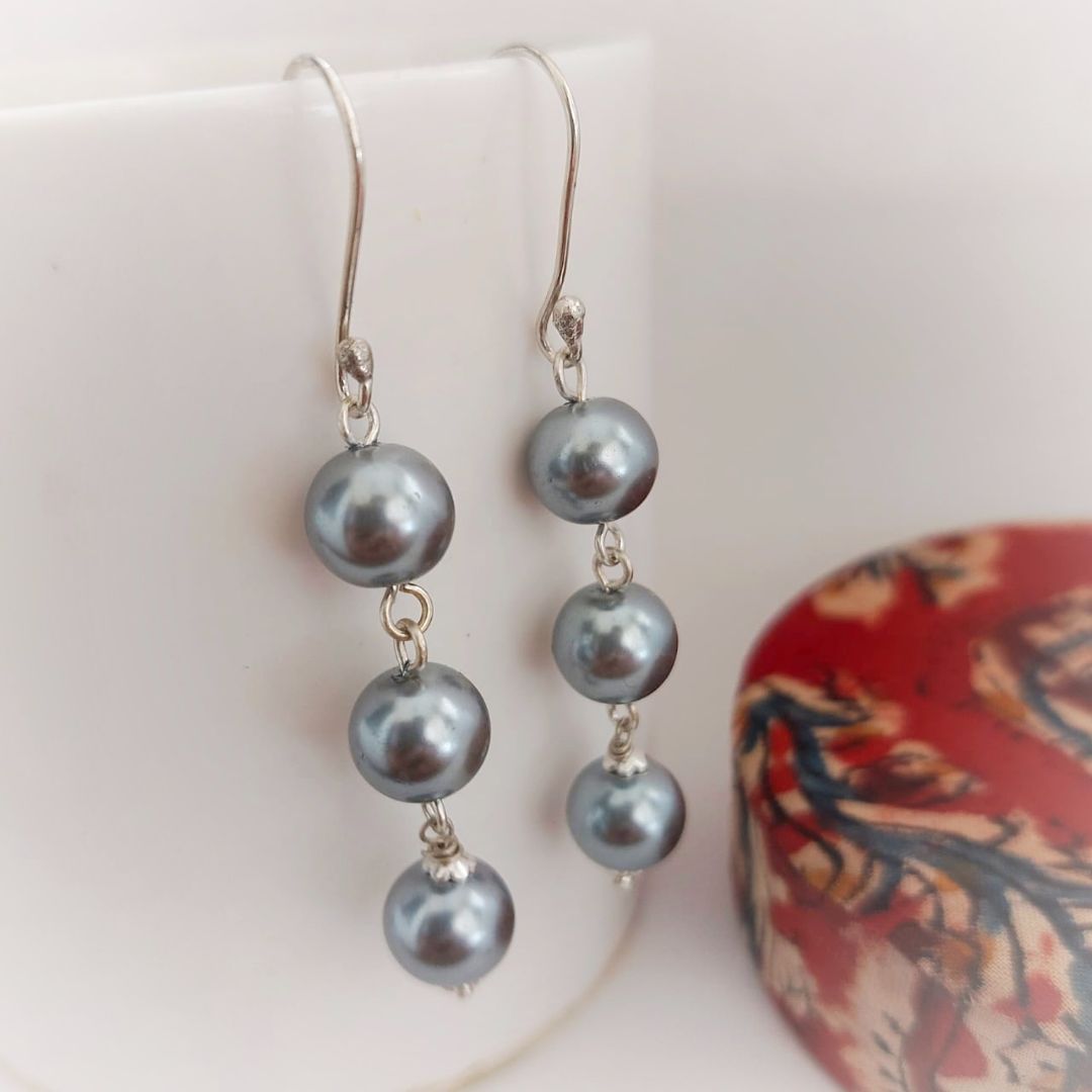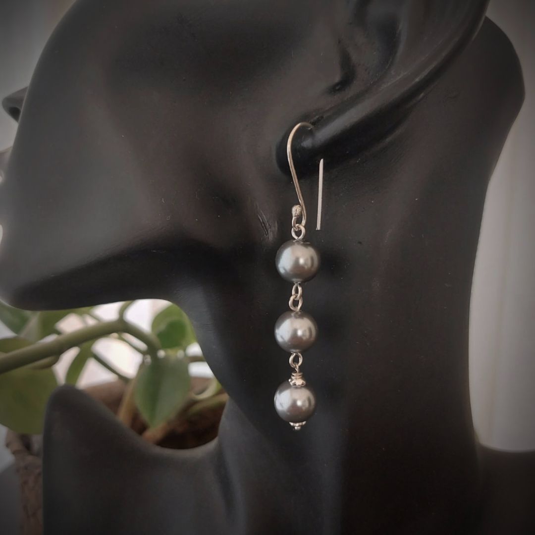 Smoky Grey: Handmade Triple Pearl Drop Earring