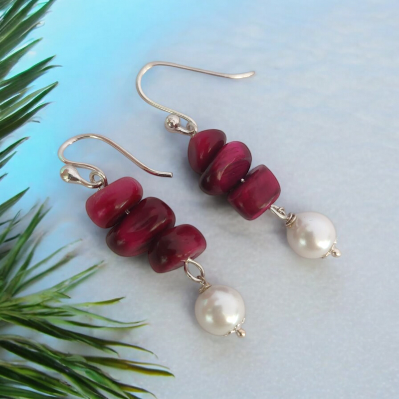 These elegant earrings feature stunning grey semi-precious beads, artfully stacked to create a natural, earthy charm. Paired with a delicate shell pearl drop, they offer the perfect balance of sophistication and organic beauty.