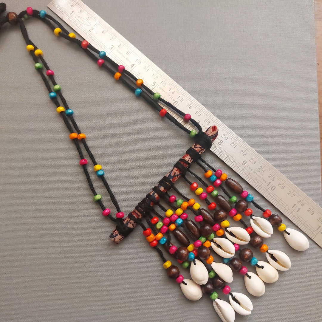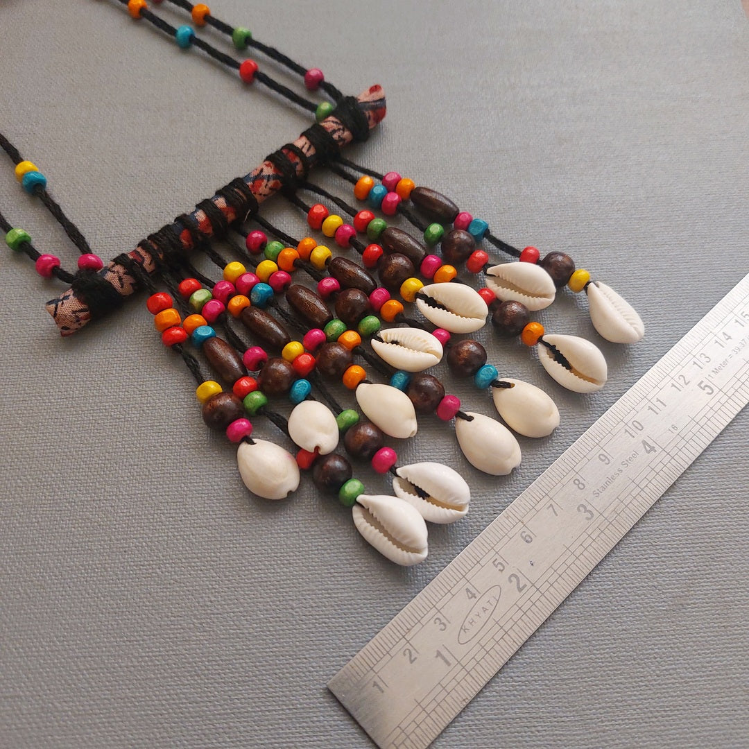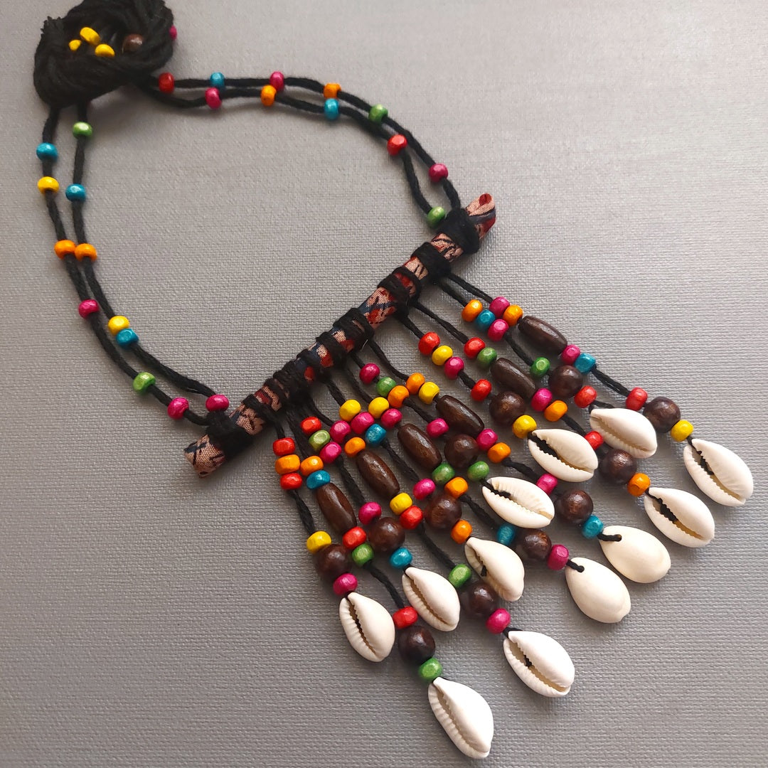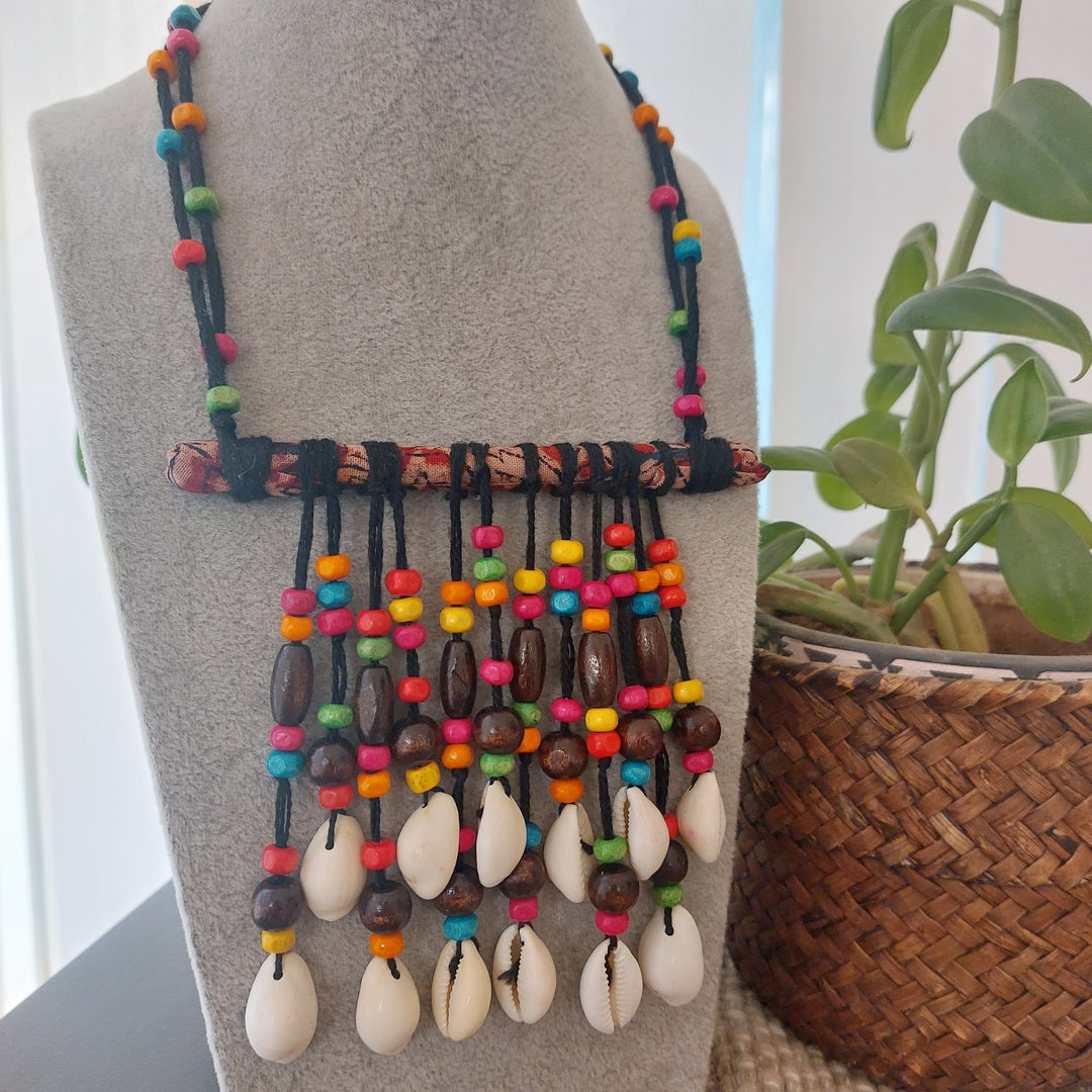 Embrace your free-spirited style with the Boho Spirit Shell Necklace, a vibrant and eclectic piece that radiates earthy charm and playful energy. This handcrafted necklace features a delightful mix of colorful wooden beads, rich brown accents, and natural cowrie shells, all strung together on a soft black cord.
